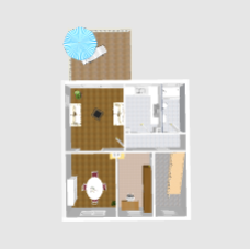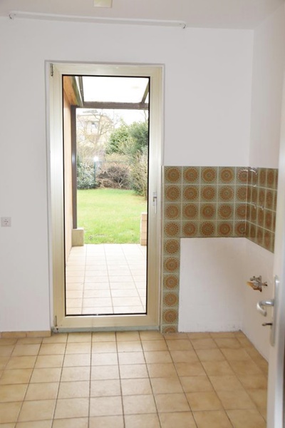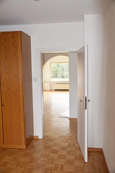 - 2-Zimmer-Erdgeschosswohnung mit ca. 70m²-Wohnfläche wäre sofort verfügbar und nach den üblichen Schönheitsreparaturen kurzfristig bezugsfähig; sie verfügt über ein neuwertiges, bisher unbenutztes, kleines Duschbad mit Fenster und Infrarotheizung; großer Wohn-/ Essbereich mit ofenem Kamin; Bodenbeläge Überwiegend aus Stäbchenparkett und Fliesen; Küche mit Zugang zum Garten, über die überdachte Terrasse (Freisitz).