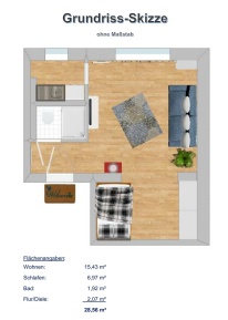 - Das Appartement verfügt über ca.28,5 m² Wohnfläche, einen Kellerabtellschrank <1m²