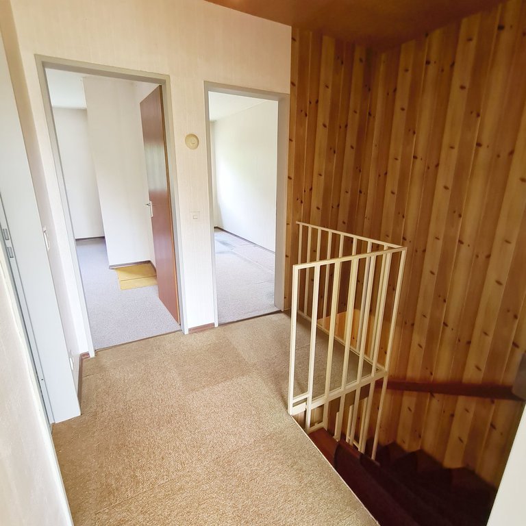 - Erdgeschoss: Haustüre/Windfang, Diele, Gäste-WC, Küche, großer Wohn- /Essbereich mit Zugang zu Terrasse und Garten.