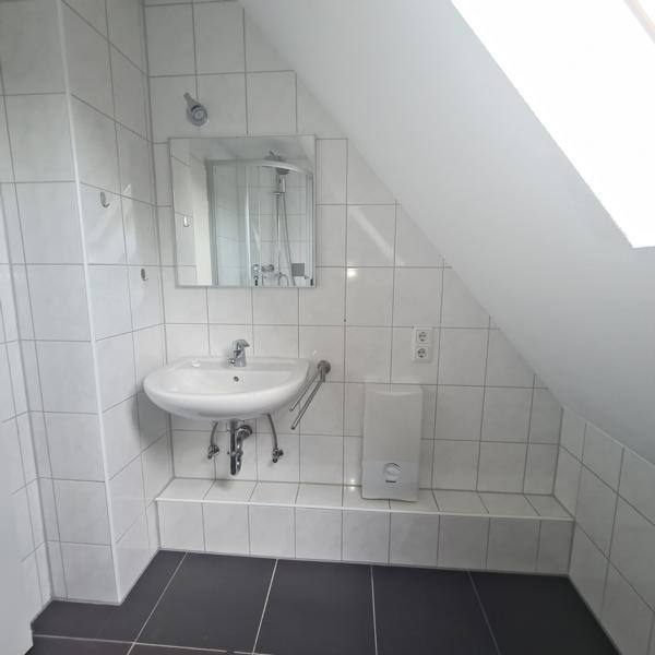 - Aufteilung obere Ebene: großer, heller Wohn-/Schlafbereich; Duschbad mit Fenster; Abstellkammer, nutzbar als "begehbarer" Kleiderschrank