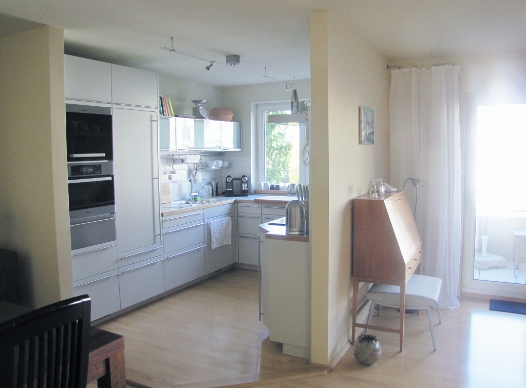 - offene Küche und großer, heller Wohn-/Essbereich mit Zugang zum Balkon