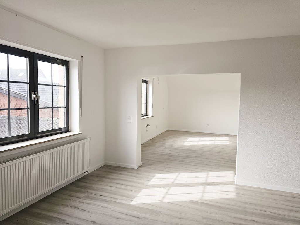 - Erstbezug nach Umbau und Sanierung, alles neu, Renoviert, weiß gestrichen, neue Bodenbeläge, neue Bäder, neue Gasetagenheizung, neue Türen, neue Schalter und Steckdosen