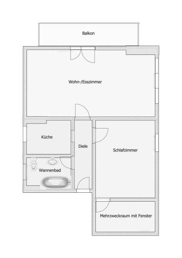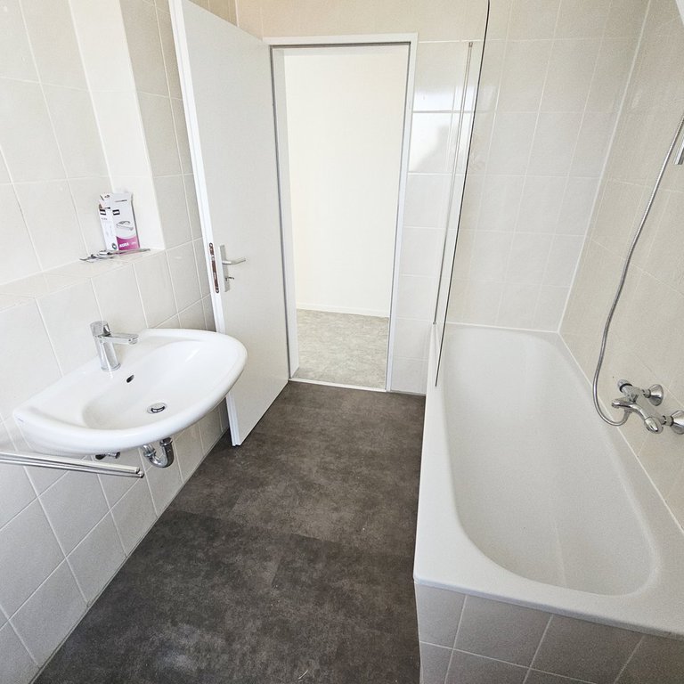 - Wohnzimmer mit Balkon, Schlafzimmer mit angeschlossenem "halben" Zimmer, Küche; großzügige Diele; Wannenbad mit Fenster, Gemeinschaftswaschküche, Pkw-Stellplatz